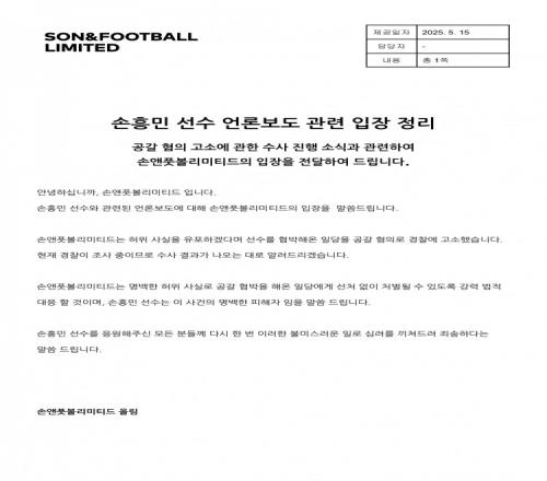我们想就孙兴慜的相关媒体报道表明Son & Football Limited的立场。